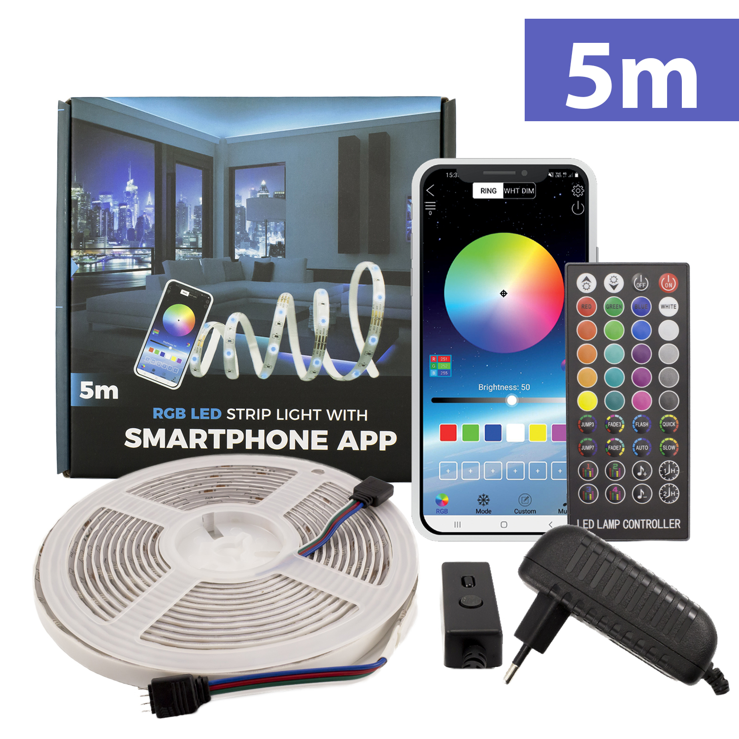 Set banda LED RGB – SMART – 5m, IP65 – SunShine